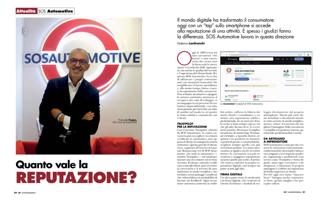 Il mondo digitale ha trasformato il consumatore: oggi con un “tap” sullo smartphone si accede alla reputazione di un’attività. E spesso i giudizi fanno la differenza. SOS Automotive lavora in questa direzione.