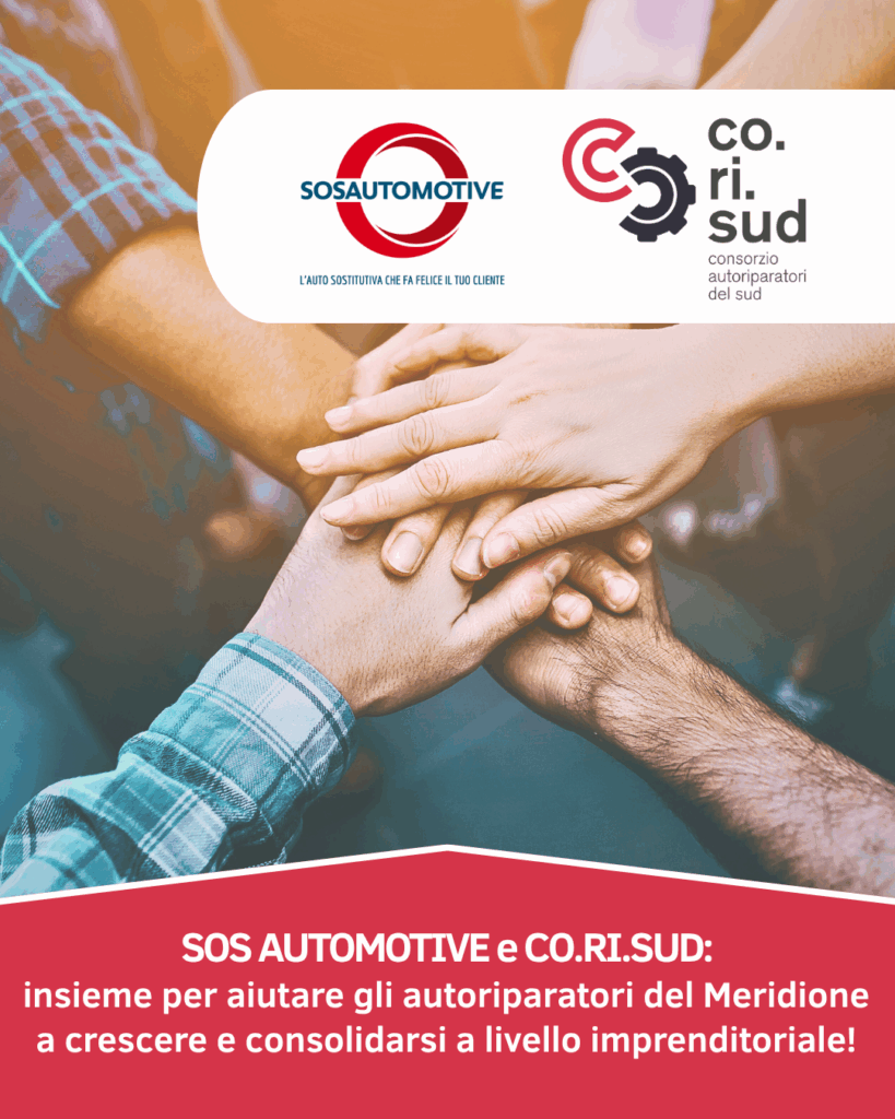 🤝 Una partnership nata proprio per aiutare gli autoriparatori del Sud a crescere a livello imprenditoriale e a garantire ai clienti CO.RI.SUD un partner sicuro ed affidabile come SOS AUTOMOTIVE, azienda specializzata nella gestione di auto sostitutive, che fornisce servizi ad alto valore aggiunto per soddisfare ogni tipo di esigenza.